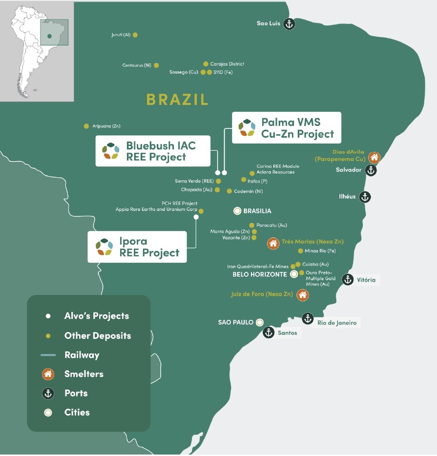 - Bluebush and Iporá located near world-class REE assets (Serra Verde and Aclara)