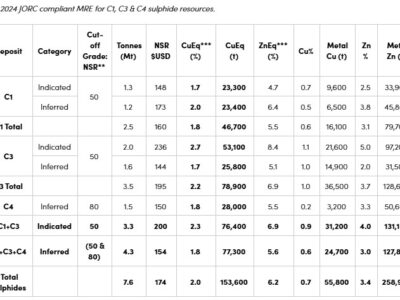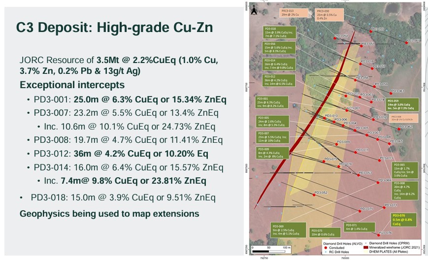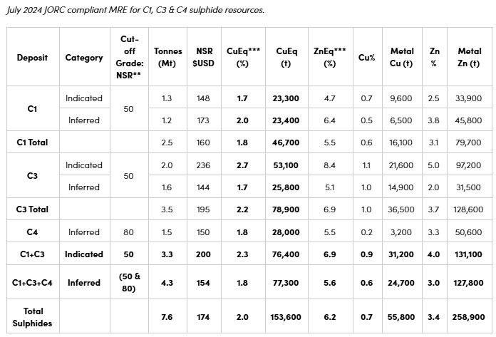 - Palma: 7.6 Mt @ 0.7% Cu, 3.4% Zn, 0.5% Pb